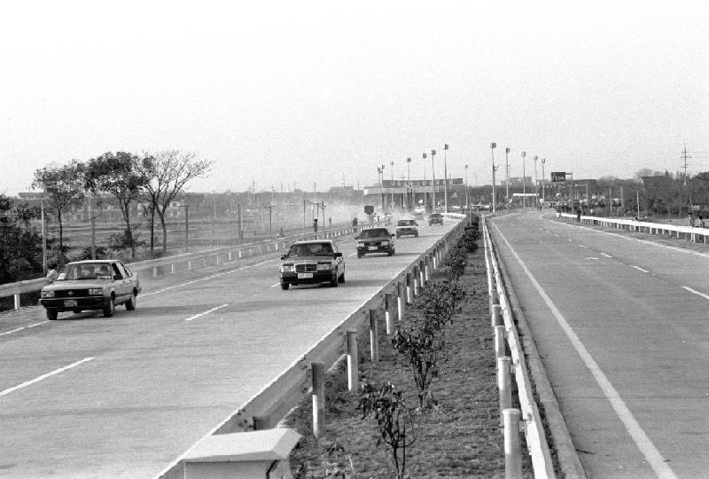 我國(guó)第一條新筑的全立交、全封閉、現(xiàn)代化設(shè)施齊全的滬嘉高速公路1988年10月31日下午正式通車。公路全長(zhǎng)20.5公里(含兩端入城段道路),路寬45米,為4車道。晝夜通車可達(dá)4萬(wàn)輛。新華社記者張劉仁攝(1988年11月15日發(fā))