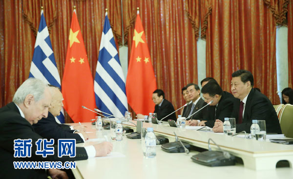 習(xí)近平贊賞帕普利亞斯長(zhǎng)期積極推動(dòng)中希友好關(guān)系發(fā)展。習(xí)近平表示,中希友好深入人心。中方高度重視同希臘關(guān)系,愿同希方一道,推動(dòng)中希全面戰(zhàn)略伙伴關(guān)系繼續(xù)深入發(fā)展。雙方要保持高層交往,在涉及彼此核心利益和重大關(guān)切問題上繼續(xù)相互支持,就重大國際和地區(qū)問題保持密切協(xié)調(diào)配合。雙方要擴(kuò)大經(jīng)貿(mào)、基礎(chǔ)設(shè)施建設(shè)、船運(yùn)、油氣、海洋等領(lǐng)域合作,特別是共同搞好中方參與經(jīng)營希臘比雷埃夫斯港口項(xiàng)目,為兩國投資合作起到良好示范和帶動(dòng)作用。中希兩國都是文明古國,相互具有很強(qiáng)的吸引力,雙方要加強(qiáng)人文交流和旅游合作,促進(jìn)文明對(duì)話互鑒。