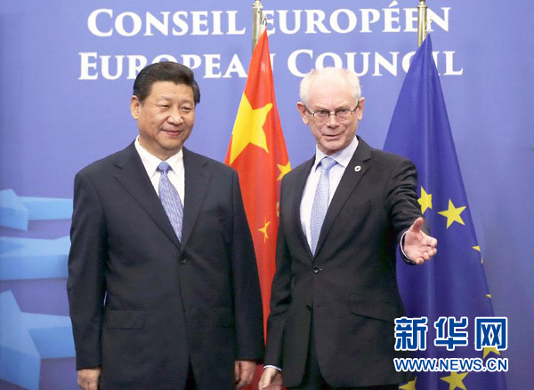 ????新華網(wǎng)布魯塞爾3月31日電(記者 魏建華 錢彤)國家主席習(xí)近平31日在布魯塞爾同歐洲理事會(huì)主席范龍佩舉行會(huì)談。雙方就新形勢(shì)下深化中歐全面戰(zhàn)略伙伴關(guān)系廣泛深入交換意見,達(dá)成重要共識(shí)。習(xí)近平強(qiáng)調(diào),要從戰(zhàn)略高度看待中歐關(guān)系,將中歐兩大力量、兩大市場(chǎng)、兩大文明結(jié)合起來,共同打造中歐和平、增長(zhǎng)、改革、文明四大伙伴關(guān)系,為中歐合作注入新動(dòng)力,為世界發(fā)展繁榮作出更大貢獻(xiàn)。