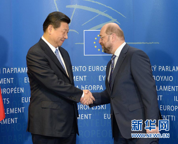 ????新華網(wǎng)布魯塞爾3月31日電(記者孟娜 徐劍梅)國家主席習(xí)近平31日在布魯塞爾會見歐洲議會議長舒爾茨。