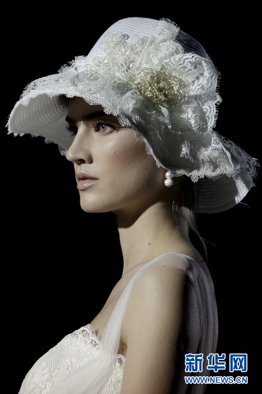 模特在T臺(tái)上展示西班牙女服裝設(shè)計(jì)師 Inmaculada Garcia的婚紗作品。Inmaculada Garcia同時(shí)也是來(lái)自巴塞羅那當(dāng)?shù)氐囊粋€(gè)婚紗品牌。