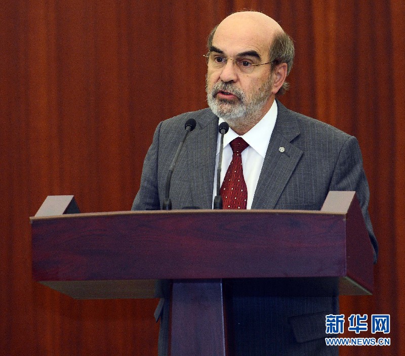 ????6月6日,在烏茲別克斯坦首都塔什干國(guó)際會(huì)議宮,聯(lián)合國(guó)糧農(nóng)組織總干事若澤·格拉齊亞諾·達(dá)席爾瓦在講話(huà)。(沙達(dá)提 攝)