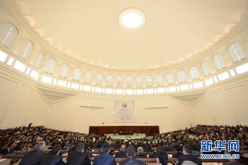 ????6月6日,在烏茲別克斯坦首都塔什干國際會(huì)議宮,會(huì)議現(xiàn)場。(沙達(dá)提 攝)