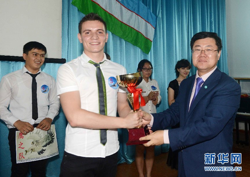 ????新華社塔什干6月9日電(記者沙達(dá)提)為慶祝中烏建交22周年,增進(jìn)兩國間了解與交流,由中國駐烏茲別克斯坦使館主辦、烏茲別克斯坦世界語言大學(xué)承辦、塔什干孔子學(xué)院協(xié)辦的“長青杯”第一屆中烏知識競賽9日在烏茲別克斯坦語言大學(xué)隆重舉行。中國駐烏茲別克斯坦大使孫立杰、烏世界語言大學(xué)校長卡尤莫夫出席頒獎儀式并致辭。