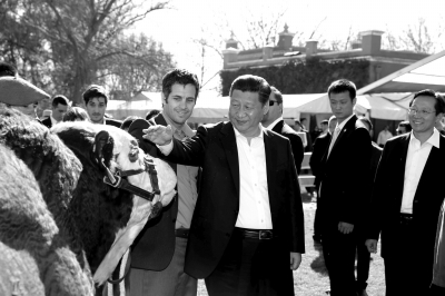 ????習(xí)近平受到農(nóng)場主莫內(nèi)塔一家熱情迎接。莫內(nèi)塔向習(xí)近平介紹,莊園畜養(yǎng)牲畜近萬頭,培育了許多優(yōu)秀種馬和肉牛品種。習(xí)近平邊聽邊詳細(xì)詢問牲畜養(yǎng)殖和農(nóng)場經(jīng)營情況。習(xí)近平指出,阿根廷是農(nóng)牧業(yè)大國,農(nóng)業(yè)現(xiàn)代化水平和科技水平很高。中國也是農(nóng)業(yè)大國。中國要發(fā)展,必須首先解決好13多億人口吃飯問題。中國高度重視農(nóng)業(yè),堅(jiān)持立足國內(nèi)、確保糧食自給自足,同時(shí)積極利用國際市場,參與國際合作,調(diào)劑農(nóng)副產(chǎn)品。中方愿意同阿方加強(qiáng)農(nóng)業(yè)領(lǐng)域合作,擴(kuò)大農(nóng)產(chǎn)品貿(mào)易。