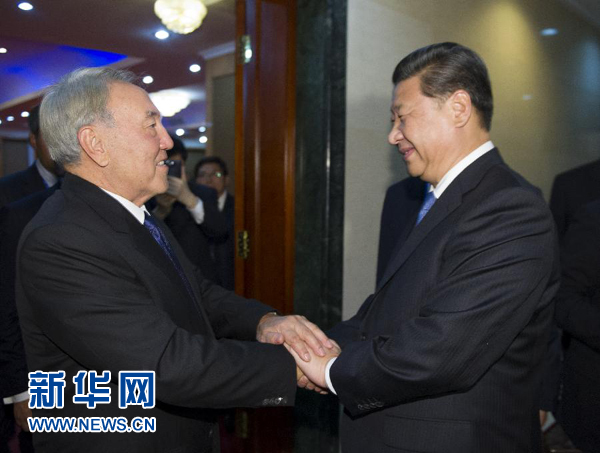 納扎爾巴耶夫表示,在習近平主席親自關切和推動下,哈中關系達到很高水平,高層交往順暢,戰(zhàn)略性合作富有成果。我們每次會面都是在坦誠、互信氣氛中進行的。我珍惜同習近平主席的友誼,愿意同習近平主席繼續(xù)保持密切交往,共同推動兩國合作,使哈中關系成為地區(qū)國家關系的典范。哈方希望以共建絲綢之路經(jīng)濟帶為契機,擴大兩國能源、雙向投資、加工制造業(yè)、過境運輸?shù)阮I域合作,建設好中亞-中國天然氣管道,提升雙邊及中亞國家和中國的經(jīng)貿(mào)合作水平。今年伊犁河流域出現(xiàn)旱情,中方克服困難,向哈方實施緊急調(diào)水,緩解了哈方境內(nèi)旱情,哈方表示感謝。