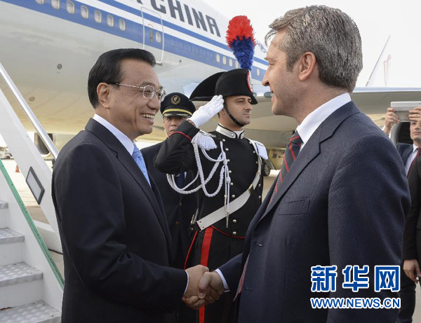 新華網(wǎng)快訊:國(guó)務(wù)院總理李克強(qiáng)當(dāng)?shù)貢r(shí)間14日下午抵達(dá)羅馬,開(kāi)始對(duì)意大利進(jìn)行正式訪(fǎng)問(wèn)。