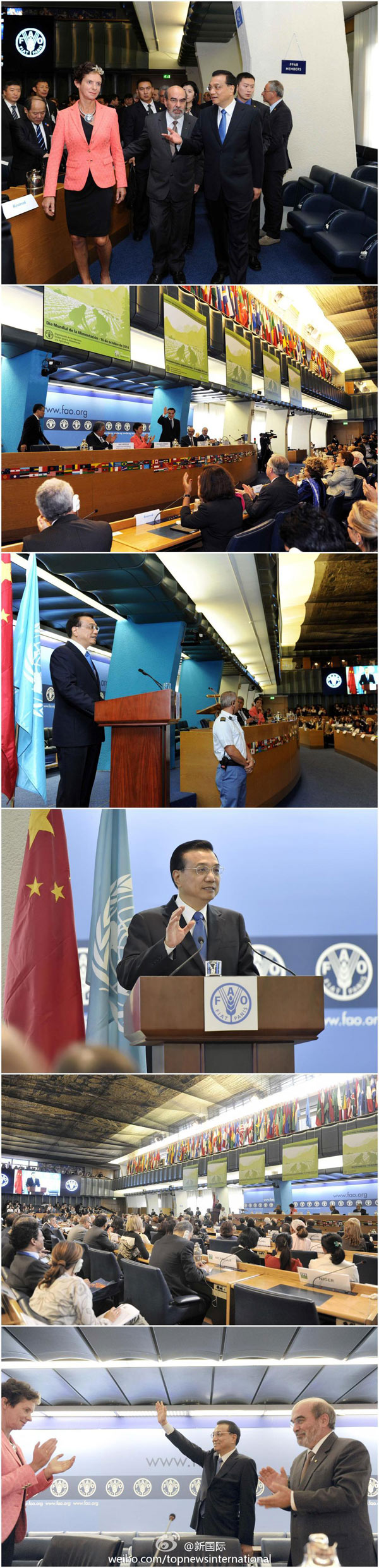????應(yīng)聯(lián)合國糧農(nóng)組織總干事格拉齊亞諾的邀請,李克強總理在世界糧食日前夕,來到位于羅馬的糧農(nóng)組織總部訪問,與格拉齊亞諾會見并發(fā)表演講。這是李克強就任總理后首訪聯(lián)合國組織,也是中國總理首次訪問糧農(nóng)組織總部。【>>>詳細】