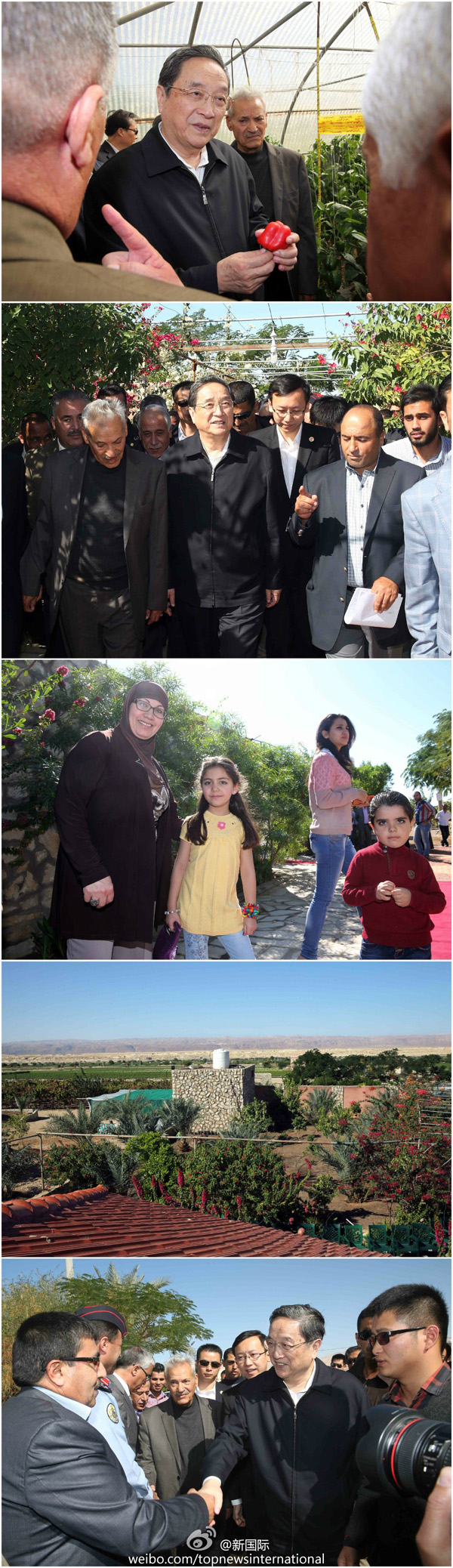 ????新華網(wǎng)北京11月8日電 據(jù)新華社“新國(guó)際”微博報(bào)道,全國(guó)政協(xié)主席俞正聲8日驅(qū)車100多公里,前往約旦河谷南段的碩果農(nóng)業(yè)合作社參觀。他走進(jìn)農(nóng)家和田間大棚,詳細(xì)了解蔬菜產(chǎn)銷情況,與約旦農(nóng)民共話友誼。俞正聲說(shuō):“約旦人民是我們的好朋友。朋友過(guò)得好,我們表示祝賀,希望你們家園更美麗?!?