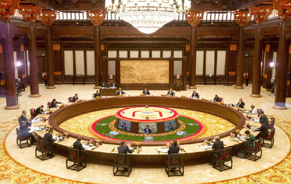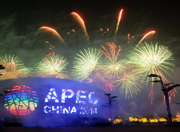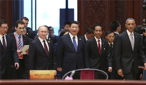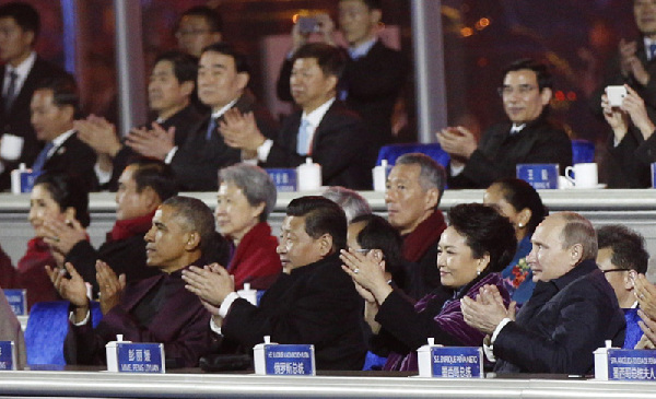 上午9時(shí)30分許,亞太經(jīng)合組織領(lǐng)導(dǎo)人非正式會(huì)議開始在雁棲湖舉行。