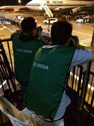 ??? 習(xí)近平主席的專機,降落在布里斯班,已經(jīng)是當(dāng)?shù)貢r間14日晚上9點50左右,話說布里斯班白天驕陽灼人,太陽一落山氣溫蹭蹭下降,等候?qū)C抵達(dá)的記者要是沒加件外套,就只能挨凍啦!