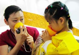 正常人從滑梯撤離,應(yīng)雙臂平舉,輕握拳頭,或雙手交叉抱臂(也可雙手抱頭),從艙內(nèi)跳出落在梯內(nèi)時(shí)手臂的位置不變,雙腿及后腳跟緊貼梯面,收腹彎腰直到滑到梯底,站立跑開(kāi)。抱小孩的旅客要把孩子抱在懷中,坐著滑下飛機(jī)。兒童、老人和孕婦也應(yīng)坐著滑下飛機(jī),但在梯面的姿勢(shì)與正常人相同。傷殘旅客根據(jù)自身的情況坐滑或由援助者協(xié)助坐滑撤離。援助者包括乘坐飛機(jī)的機(jī)組人員、航空公司的雇員、軍人、警察、消防人員、身強(qiáng)力壯的男性旅客。跳滑梯時(shí)必須聽(tīng)從乘務(wù)員的口令一個(gè)接一個(gè)有序往下跳,不可推擠。