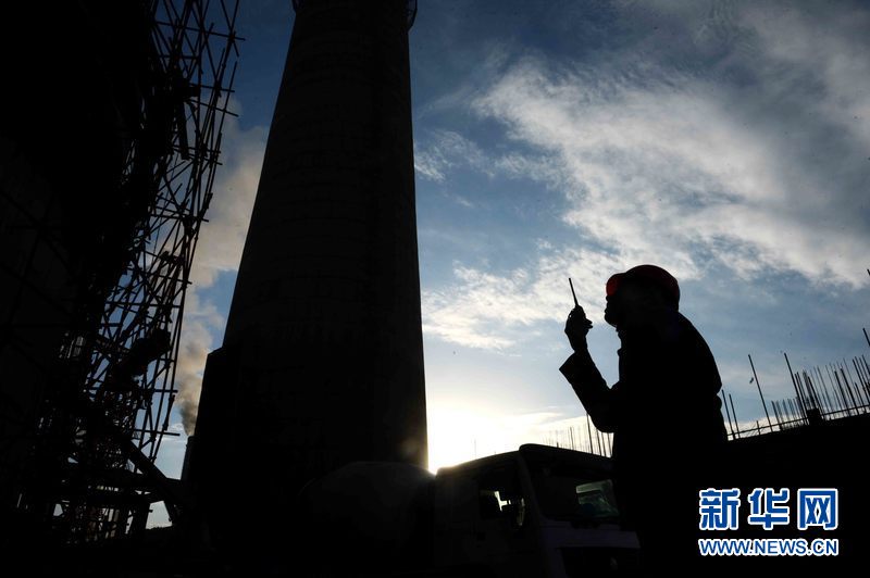 ????烏茲別克斯坦安格連(市)電廠煙囪施工現(xiàn)場,來自中國能建集團黑龍江省火電第一工程有限公司的工人在作業(yè)。新華網(wǎng)發(fā) 記者沙達提 攝