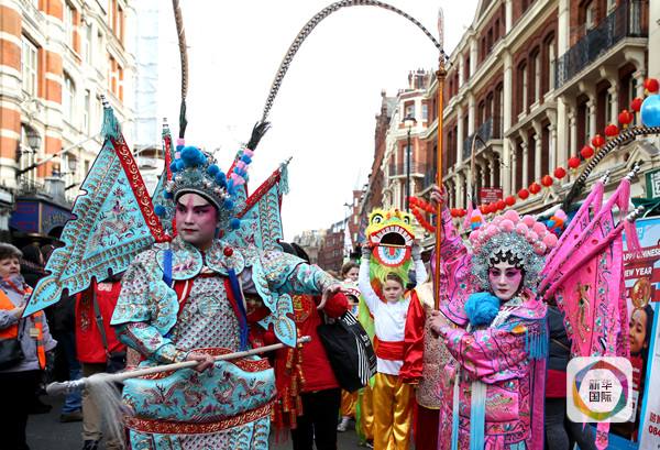 ????2015年2月22日,身穿京劇服裝的演員參加在英國倫敦舉行的新春花車巡游,慶祝中國農(nóng)歷羊年春節(jié)。