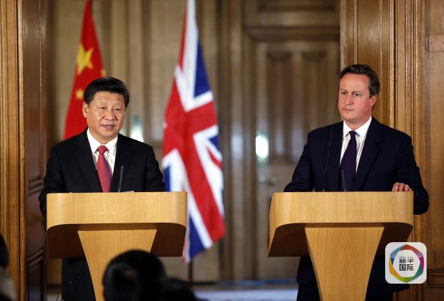10月21日,國(guó)家主席習(xí)近平在倫敦唐寧街首相府同英國(guó)首相卡梅倫舉行會(huì)談。這是會(huì)談結(jié)束后,習(xí)近平和卡梅倫共同會(huì)見記者。 新華社記者鞠鵬攝