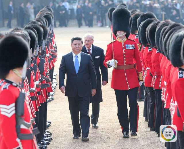 國(guó)家主席習(xí)近平出席英國(guó)女王伊麗莎白二世在倫敦騎兵檢閱場(chǎng)舉行的隆重歡迎儀式。(龐興雷攝)