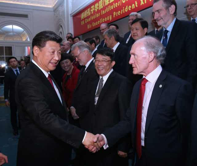 習(xí)近平在致辭中指出,多年來,孔子學(xué)院和孔子課堂的教職工為介紹中華文化、溝通人民心靈、搭建友誼橋梁傾注了大量熱情和心血,取得了可喜成績(jī)??吹接?guó)有這么多老師和學(xué)生在教授和學(xué)習(xí)漢語(yǔ),尤其看到有這么多英國(guó)學(xué)生對(duì)中國(guó)語(yǔ)言文化感興趣,我感到很高興。