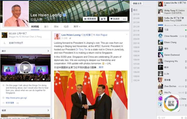 李顯龍還上傳了一張與習(xí)主席握手的照片,并解釋道,該照片攝于在中國舉行的2014年亞太經(jīng)濟合作組織領(lǐng)導(dǎo)人非正式會議。