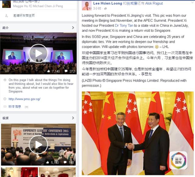 新華網(wǎng)北京11月6日電 國家主席習(xí)近平到訪新加坡的幾個小時前,新加坡總理李顯龍在自己的臉書主頁上表示,歡迎習(xí)主席到新加坡進行國事訪問。