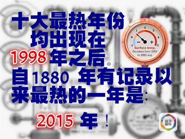 由于厄爾尼諾等現(xiàn)象的作用,地球每年平均氣溫略有差異不足為奇。但縱觀1880年有可靠記錄以來的歷年氣溫狀況可以看出,地球表面溫度呈爬高之勢,10個(gè)氣溫最高的年份都出現(xiàn)在1998年之后,而2015年是目前為止最熱的一年。