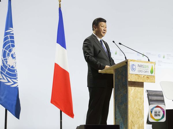 習近平在巴黎出席氣候變化巴黎大會開幕式并發(fā)表題為《攜手構建合作共贏、公平合理的氣候變化治理機制》的重要講話。