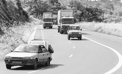 中國(guó)企業(yè)修建的高速公路穿過剛果(布)原始熱帶雨林。記者 苑基榮攝