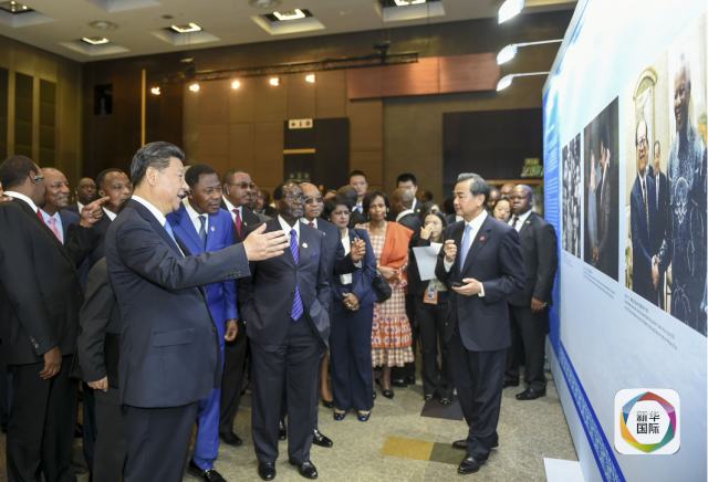 12月4日,國(guó)家主席習(xí)近平在約翰內(nèi)斯堡出席中非合作論壇15周年成果圖片展開幕式,同南非總統(tǒng)祖馬,非盟輪值主席、津巴布韋總統(tǒng)穆加貝一道為展覽剪彩。這是習(xí)近平同非洲國(guó)家和地區(qū)組織領(lǐng)導(dǎo)人觀看展覽。(新華社記者謝環(huán)馳攝)