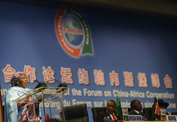在峰會(huì)開幕式上,南非總統(tǒng)祖馬、穆加貝總統(tǒng)、非盟委員會(huì)主席恩科薩扎娜·德拉米尼-祖馬分別致辭。他們盛贊中非傳統(tǒng)友誼和合作成果,高度評(píng)價(jià)習(xí)近平主席關(guān)于深化中非合作的重要舉措,熱烈歡迎中方宣布的促進(jìn)中非合作措施,支持把中非關(guān)系提升為全面戰(zhàn)略合作伙伴關(guān)系,表示愿同中方攜手并肩,共同開創(chuàng)中非關(guān)系更加光明的未來(lái)。