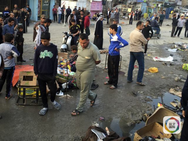 2月28日,在巴格達(dá),人們聚集在發(fā)生爆炸的市場附近。 新華社發(fā)(哈利勒·達(dá)烏德攝)