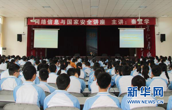 ????4月26日,國防科學技術大學秦宜學教授在四川邛崍第一中學做《網(wǎng)絡信息與國家安全》講座。