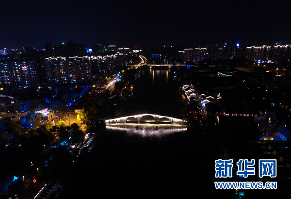 航拍杭州拱宸橋附近的的京杭大運河夜景(5月3日攝)。杭州自古多橋。斷橋、長橋、錢塘江大橋、復興大橋……古樸文雅輝映現代氣派,透出這座城市融匯古今、靈動開放的底蘊。舉世矚目的二十國集團(G20)領導人第十一次峰會將在這里舉行。有趣的是,這次峰會的會標,也是一座橋——一座由20個成員搭起的“橋”。這會是一座怎樣的橋?它能否緩解當前全球經貿河道上的種種淤塞?它能否跨越發(fā)達國家和發(fā)展中國家之間的溝溝壑壑? 全球在期待,中國在行動。新華社記者黃宗治攝
