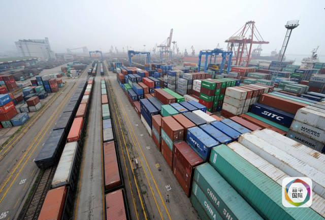 這張2014年6月27日拍攝的照片顯示,在連云港港區(qū)內(nèi)的新亞歐大陸橋鐵路運(yùn)輸專線站場(chǎng),準(zhǔn)備運(yùn)往哈薩克斯坦的過(guò)境集裝箱在裝車。(新華社記者孫參攝)