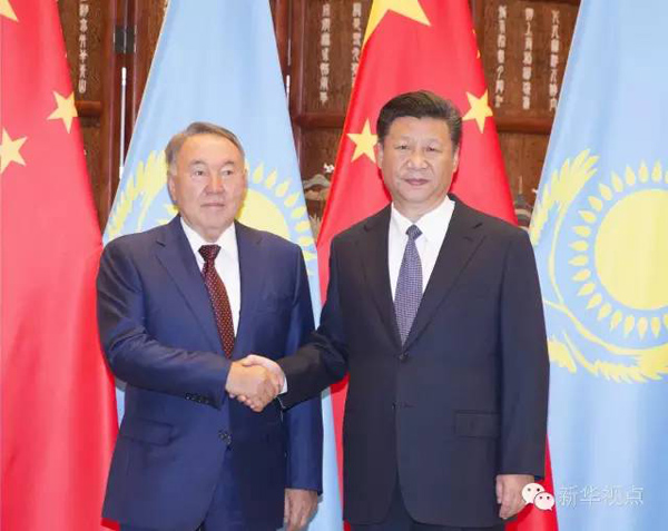 同納扎爾巴耶夫總統(tǒng)會談時,習近平主席指出,中哈雙方要全面推進“一帶一路”建設(shè)。兩國元首還共同見證了有關(guān)“絲綢之路經(jīng)濟帶”建設(shè)與“光明之路”新經(jīng)濟政策對接合作等文件的簽署。