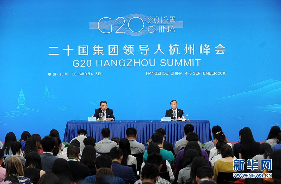 9月3日,中國代表團(tuán)在浙江杭州舉行新聞發(fā)布會(huì),商務(wù)部副部長王受文就G20杭州峰會(huì)經(jīng)貿(mào)成果展望向記者介紹情況并回答提問。新華網(wǎng)記者?陳競超 攝
