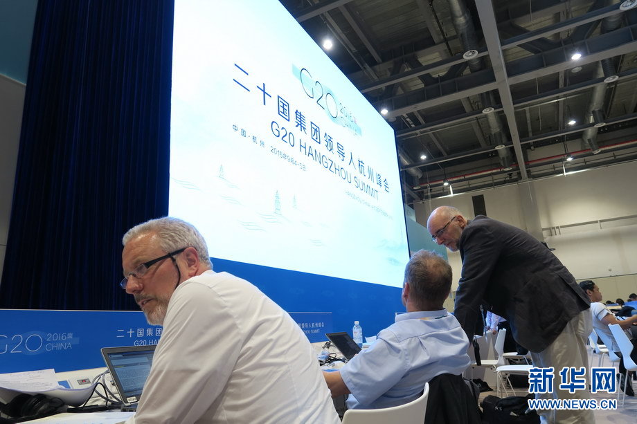 二十國集團(tuán)領(lǐng)導(dǎo)人第十一次峰會9月4日至5日在浙江杭州舉行。峰會新聞中心一派繁忙景象,境內(nèi)外各路媒體記者使出“洪荒之力”,實時報道峰會動態(tài)。新華網(wǎng)記者 陳競超 攝
