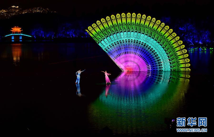 ??? 9月4日,演員在表演《美麗的愛情傳說》。當日,出席二十國集團領導人杭州峰會的G20成員和嘉賓國領導人及有關國際組織負責人在杭州西湖景區(qū)觀看《最憶是杭州》實景演出交響音樂會。新華社記者 張鐸 攝