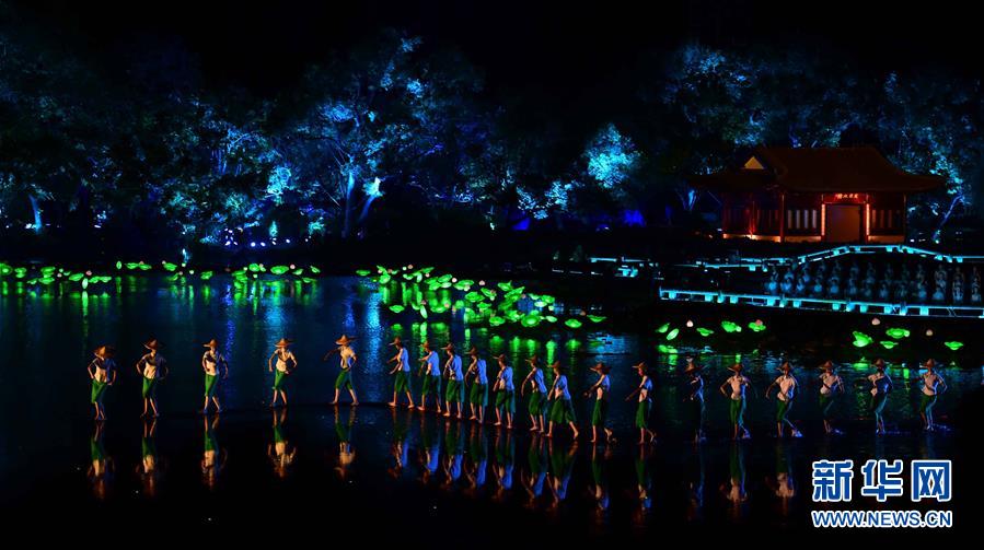9月4日,演員在表演《采茶舞曲》。當(dāng)日,出席二十國集團(tuán)領(lǐng)導(dǎo)人杭州峰會(huì)的G20成員和嘉賓國領(lǐng)導(dǎo)人及有關(guān)國際組織負(fù)責(zé)人在杭州西湖景區(qū)觀看《最憶是杭州》實(shí)景演出交響音樂會(huì)。新華社記者 張鐸 攝
