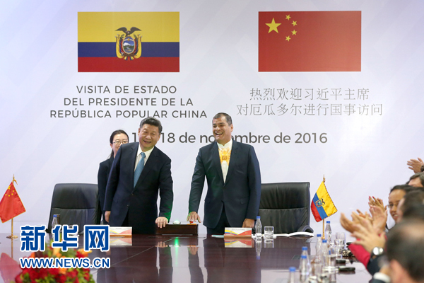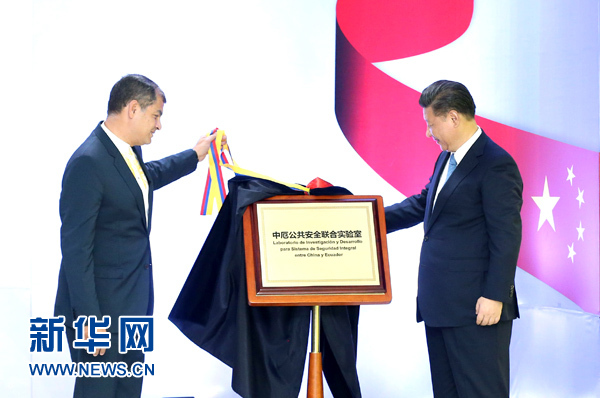 新華社基多11月18日電(記者王聰 霍小光)國(guó)家主席習(xí)近平18日在基多同厄瓜多爾總統(tǒng)科雷亞共同出席中方援建的厄瓜多爾公共安全應(yīng)急指揮中心聯(lián)合實(shí)驗(yàn)室揭牌儀式,喬內(nèi)醫(yī)院奠基、科卡科多-辛克雷水電站竣工發(fā)電視頻連線(xiàn)活動(dòng)。