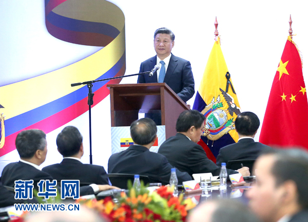 習(xí)近平在致辭中指出,中厄友誼源遠(yuǎn)流長(zhǎng)。近年來(lái),雙邊友好關(guān)系實(shí)現(xiàn)了全面發(fā)展,并剛剛升級(jí)為全面戰(zhàn)略伙伴關(guān)系。兩國(guó)能夠加強(qiáng)合作,得益于雙方對(duì)發(fā)展前景的堅(jiān)定信心,對(duì)互為發(fā)展機(jī)遇的清晰認(rèn)知。當(dāng)前,中國(guó)和厄瓜多爾深化互利共贏合作恰逢其時(shí)。中方愿同厄方深化合作、攜手發(fā)展,共同譜寫(xiě)兩國(guó)全面戰(zhàn)略伙伴關(guān)系新篇章。