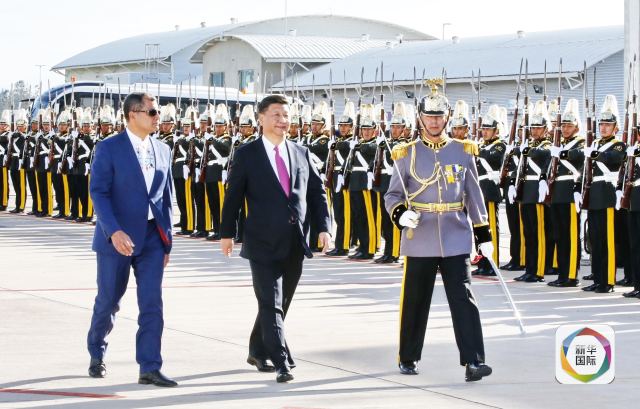 當(dāng)?shù)貢r(shí)間11月17日,國(guó)家主席習(xí)近平乘專機(jī)抵達(dá)基多,開始對(duì)厄瓜多爾共和國(guó)進(jìn)行國(guó)事訪問(wèn)。這是厄瓜多爾總統(tǒng)科雷亞在機(jī)場(chǎng)為習(xí)近平舉行隆重歡迎儀式。(新華社記者鞠鵬攝)
