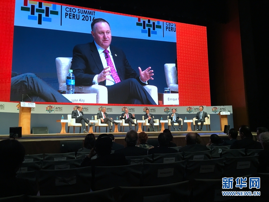 當(dāng)?shù)貢r(shí)間11月19日,APEC工商領(lǐng)導(dǎo)人峰會(huì)舉行主題為“重新設(shè)計(jì)貿(mào)易”的現(xiàn)場討論會(huì)。圖為新西蘭總理約翰·基在討論會(huì)上發(fā)言。