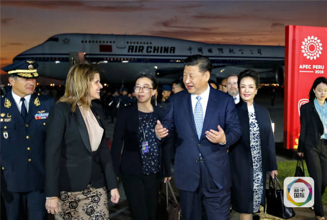 當?shù)貢r間11月18日,國家主席習近平抵達利馬,出席亞太經(jīng)合組織第二十四次領(lǐng)導人非正式會議并對秘魯共和國進行國事訪問。習近平和夫人彭麗媛受到秘魯副總統(tǒng)阿勞斯等熱情迎接。新華社記者鞠鵬攝