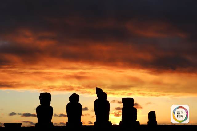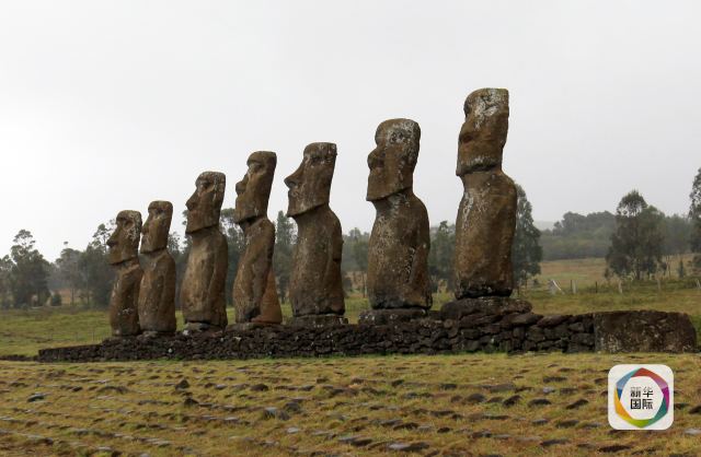 復(fù)活節(jié)島上的巨人石像排成一列。(新華社記者葉書(shū)宏攝)