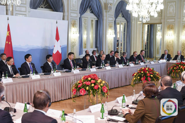 1月16日,國家主席習(xí)近平在伯爾尼同瑞士聯(lián)邦主席洛伊特哈德共同會(huì)見瑞士經(jīng)濟(jì)界代表。(新華社記者李學(xué)仁攝)