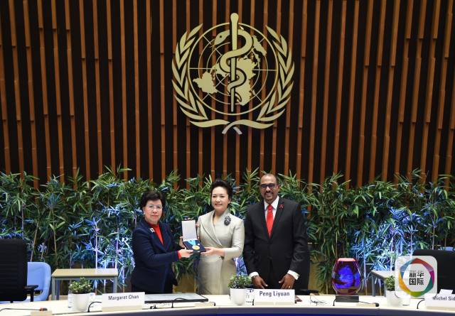 1月18日,國家主席習近平夫人、世界衛(wèi)生組織結核病和艾滋病防治親善大使彭麗媛應世界衛(wèi)生組織總干事陳馮富珍和聯(lián)合國艾滋病規(guī)劃署執(zhí)行主任西迪貝邀請,在瑞士日內瓦出席為她舉行的親善大使任期續(xù)延暨頒獎儀式。這是世界衛(wèi)生組織總干事陳馮富珍向彭麗媛頒發(fā)世衛(wèi)組織榮譽勛章。(新華社記者謝環(huán)馳攝)