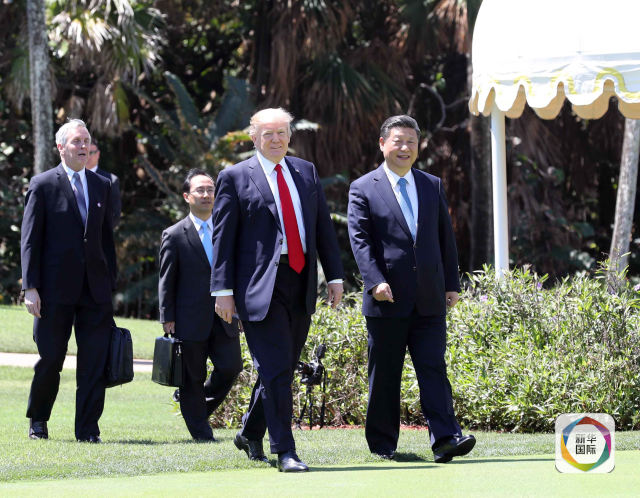 當?shù)貢r間4月7日,國家主席習近平在美國佛羅里達州海湖莊園同美國總統(tǒng)特朗普舉行中美元首第二場正式會晤。會晤后,習近平同特朗普到秀麗宜人的海湖莊園中散步,在輕松友好的氣氛中繼續(xù)就兩國友好合作進行討論。(新華社記者劉衛(wèi)兵攝)(新華國際客戶端報道)