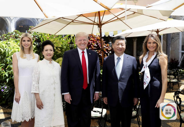 當?shù)貢r間4月7日,國家主席習近平在美國佛羅里達州海湖莊園同美國總統(tǒng)特朗普舉行中美元首第二場正式會晤。這是習近平和夫人彭麗媛同特朗普和夫人梅拉尼婭、女兒伊萬卡在莊園內合影。(新華社記者蘭紅光攝)