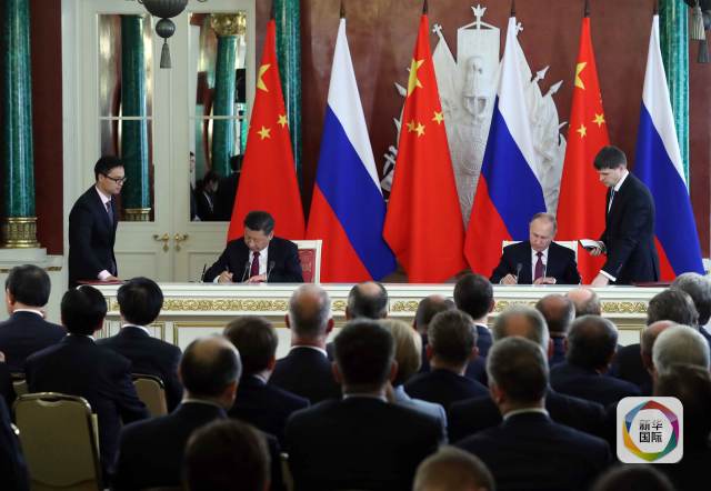 7月4日,國家主席習(xí)近平在莫斯科克里姆林宮同俄羅斯總統(tǒng)普京舉行會(huì)談。 這是會(huì)談后,兩國元首共同出席簽字儀式。新華社記者 饒愛民 攝
