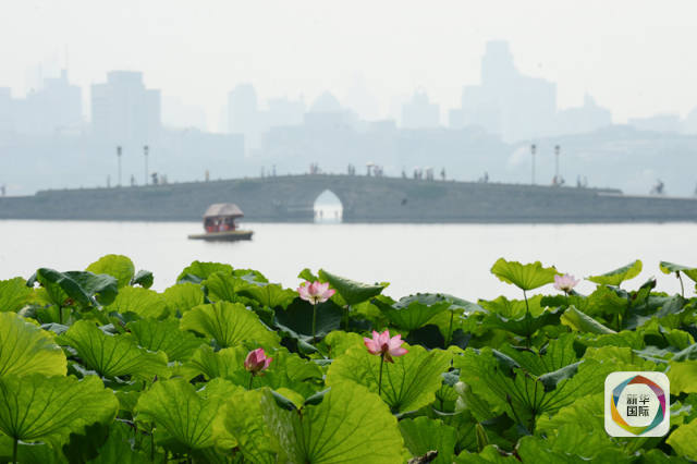 ?。▓D為游客在西湖白堤錦帶橋參觀游覽)