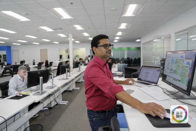 圖為在美國加利福尼亞州圣何塞的美的未來技術(shù)中心,員工在電腦前工作。(新華社發(fā))